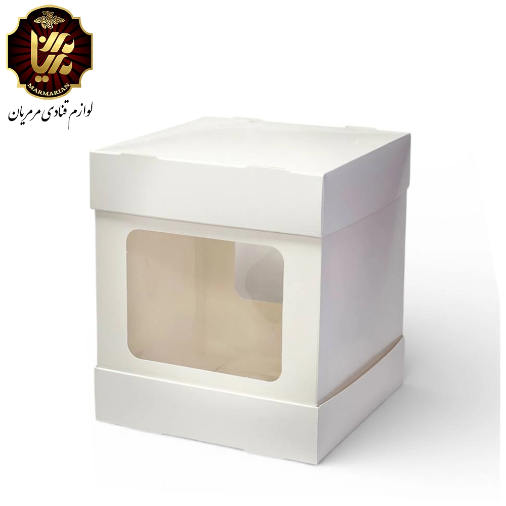 مرمریان - ابزارآلات قنادی - جعبه کیک اقتصادی 2طرف طلق ابعاد 20 در 20 ارتفاع 24 سانت