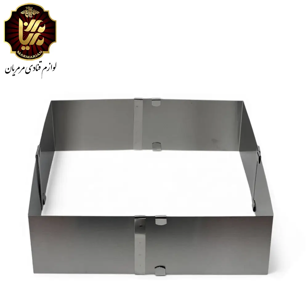 رینگ استیل مربع متحرک یک ابزار حرفه‌ای و بسیار کاربردی برای قالب‌دهی و مونتاژ انواع کیک، دسر و فینگر فود است. طراحی متحرک (قابل تنظیم) این رینگ امکان تغییر سایز را فراهم می‌کند و به شما اجازه می‌دهد با یک ابزار، اندازه‌های مختلفی از دسر یا کیک را با ظاهری کاملاً منظم و دقیق آماده کنید.