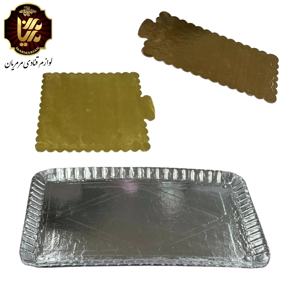 مرمریان - ابزارآلات قنادی - زیر کیکی مقوایی طلایی مستطیل و مربع