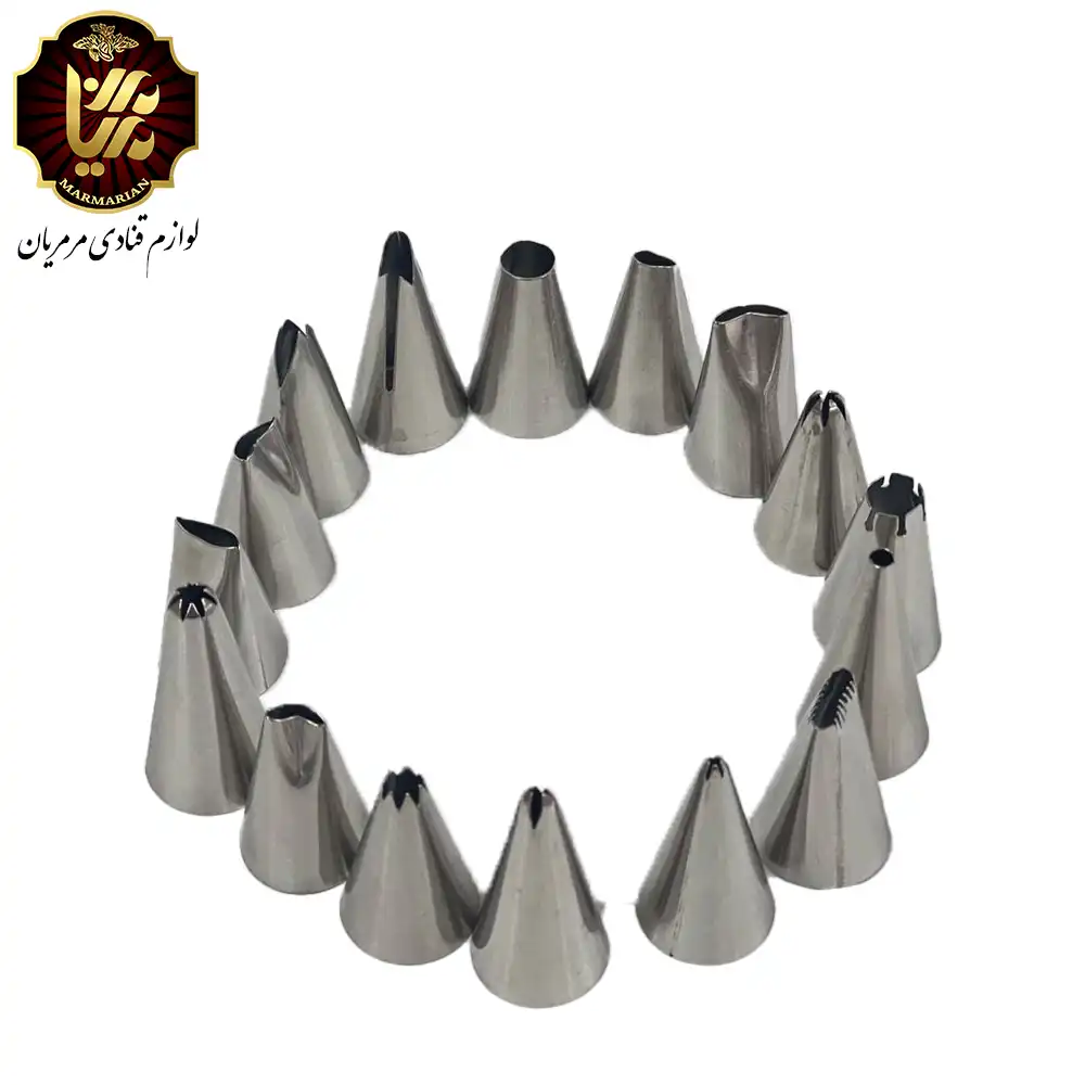 مرمریان - ابزارآلات قنادی - ست ماسوره 16 عددی استیل
