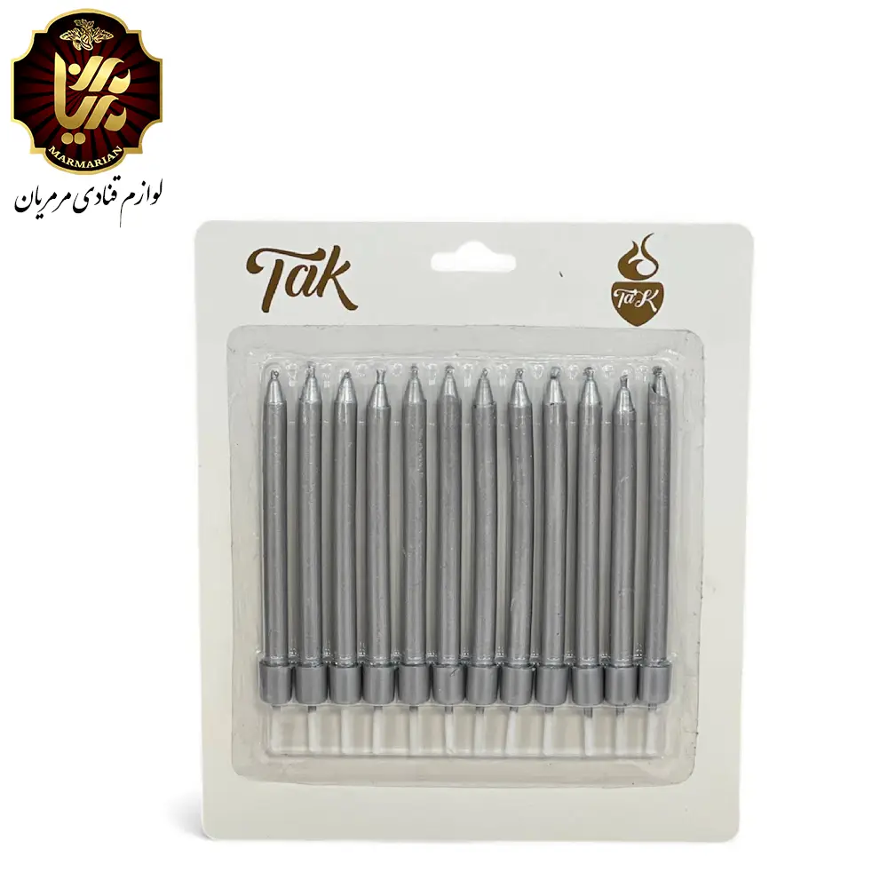 مرمریان - ابزارآلات قنادی - شمع مدادی نقره ای بسته 12 عددی