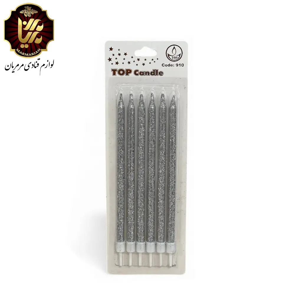 مرمریان - ابزارآلات قنادی - شمع مدادی نقره ای بسته 6 عددی