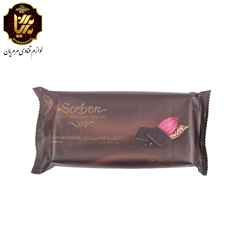 مرمریان - لوازم تزیین کیک - شکلات تخته ای - شکلات شمشی تلخ سوربن 250 گرمی