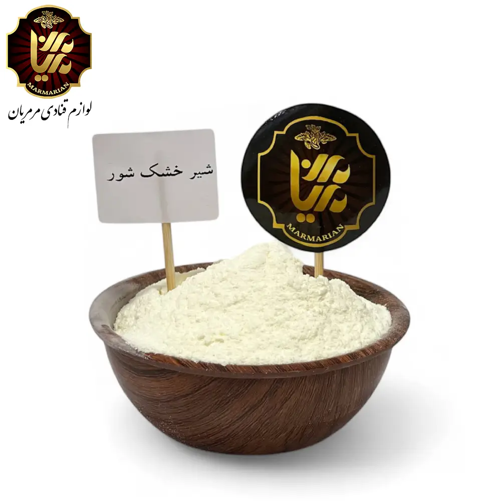 شیر خشک شور یا شیر خشک صنعتی نوعی پودر سفید و نرم است که از تبخیر کامل رطوبت شیر تازه گاو تولید میشود. این محصول طعمی ملایم و کمی شور دارد و بهطور تخصصی در قنادی، نانوایی، لبنیات و صنایع غذایی استفاده میشود.