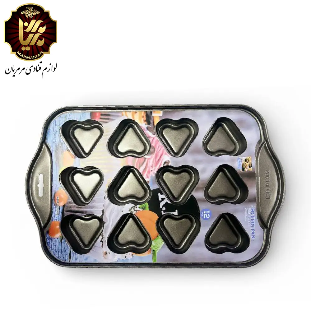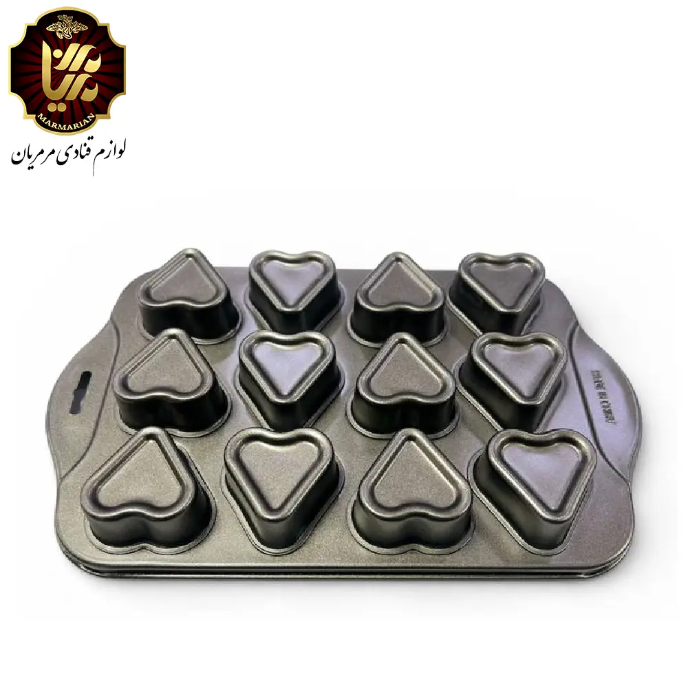 طراحی ۱۲ خانه باعث صرفهجویی در زمان پخت میشود و فرم قلبی قالب، مافینها را برای پذیرایی و هدیه بسیار جذاب میکند.
