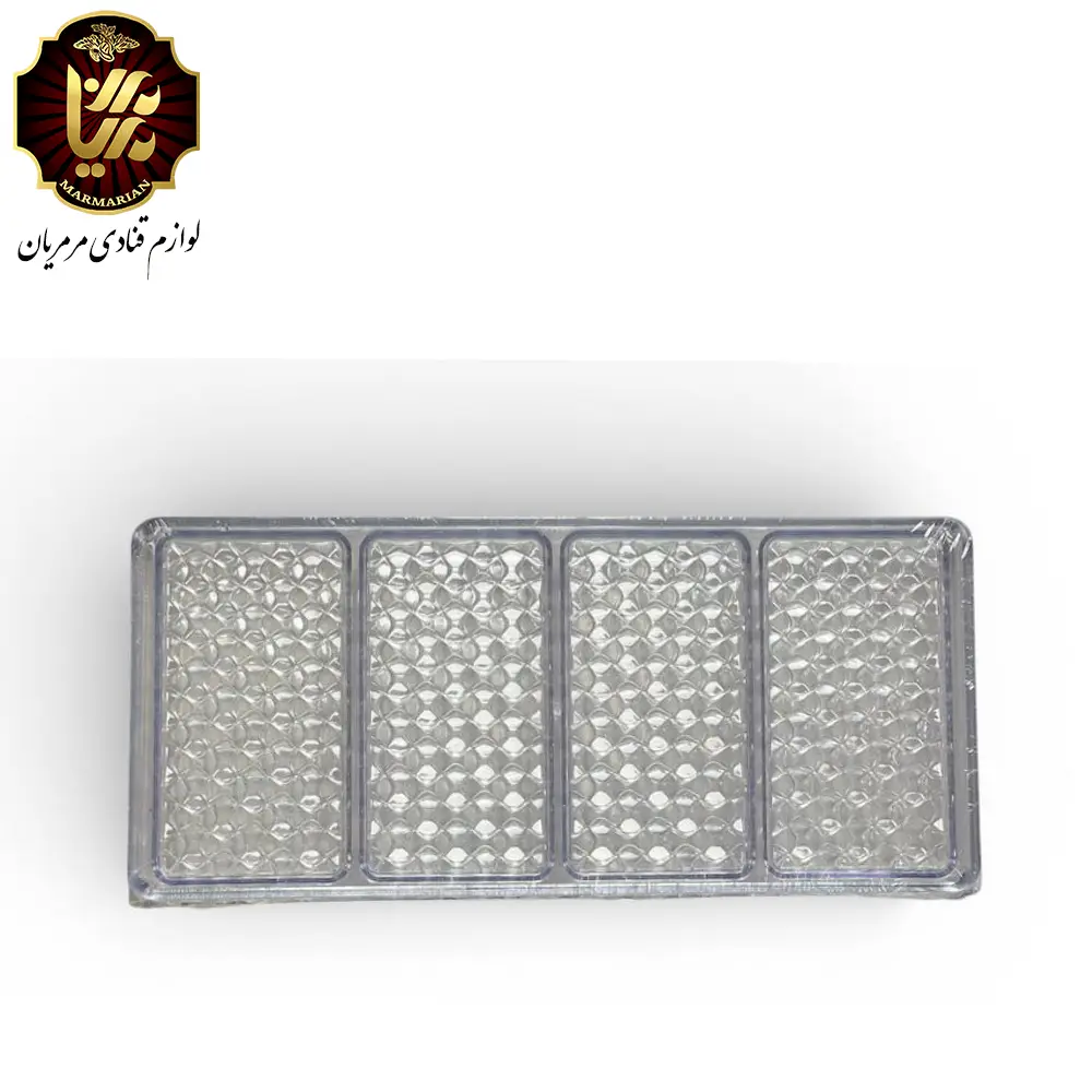قالب شکلات پلی‌کربنات طرح بافت با الهام از الگوهای بافت‌دار و سطح‌دار طراحی شده و ظاهری خاص و متفاوت به شکلات‌های دست‌ساز می‌بخشد. این قالب باعث ایجاد شکلات‌هایی با سطح برجسته و جذاب می‌شود که جلوه‌ای هنری و حرفه‌ای دارند.