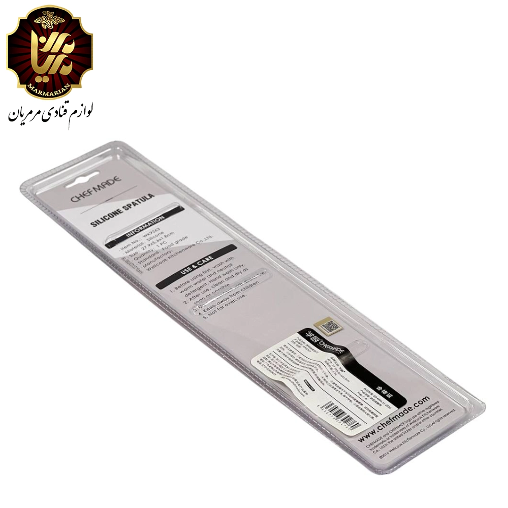 این ابزار هم برای هم‌زدن و مخلوط‌کردن و هم برای جمع‌کردن مواد از دیواره ظرف کاملاً کاربردی است و در کنار ظاهر شیک، عملکردی حرفه‌ای ارائه می‌دهد؛ دقیقاً همان چیزی که از محصولات شف‌مید انتظار می‌رود.