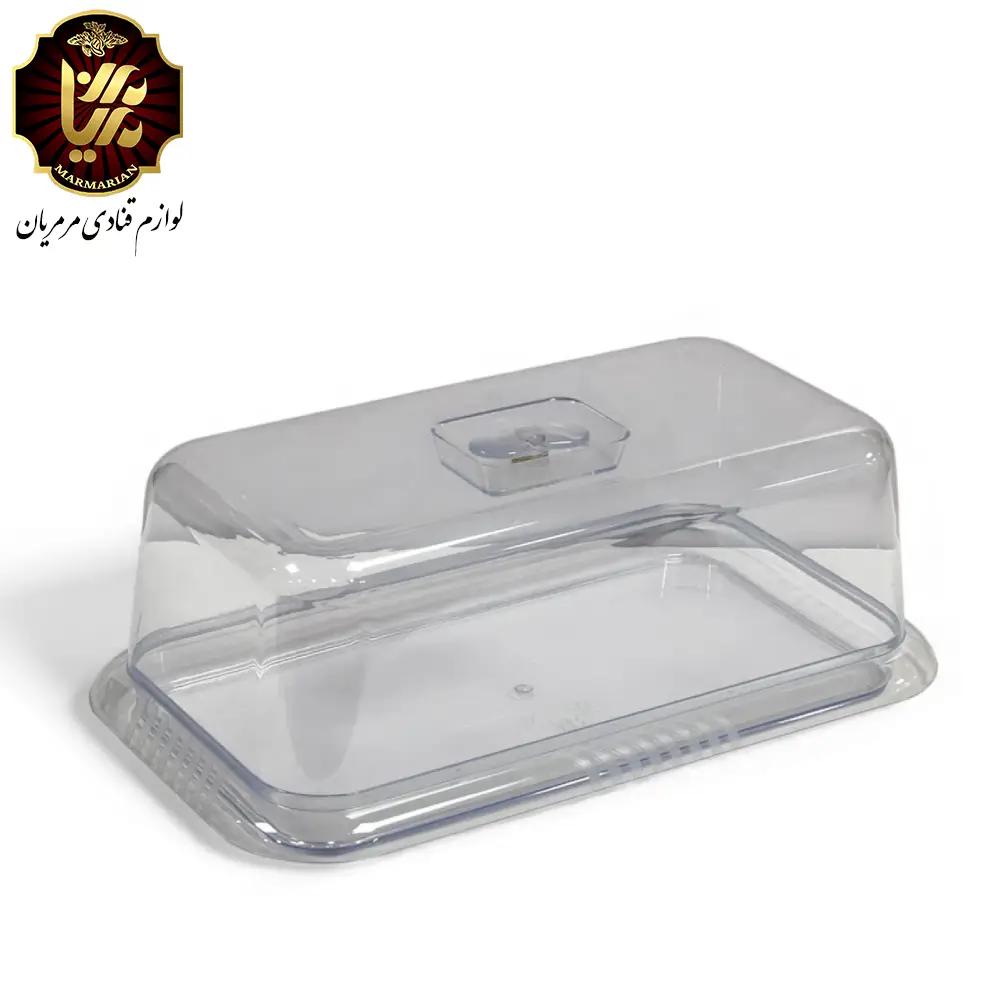 محافظ رولتی خورشیدی یک بستهبندی حرفهای و بسیار مقاوم برای انواع کیک رولت، شیرینیهای رولتی و دسرهای طولی است. این محصول از پلاستیک فشرده و ضخیم تولید شده و نسبت به محافظهای طلقی معمولی دوام و استحکام بهمراتب بالاتری دارد. طراحی درب این مدل بهصورت خورشیدی شیاردار است که باعث میشود کاملاً روی سینی قفل شده و در جابهجایی هیچگونه لغزش یا بازشدگی رخ ندهد.