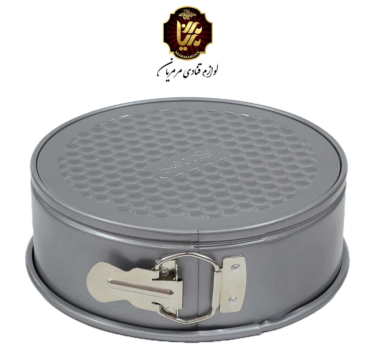 وجود گیره بر روی بدنه این نوع قالبها باعث شده نام قالب کیک کمربندی رویشان بماند. با استفاده از گیره میتوان به راحتی بدون آنکه به شکل و ساختار ظاهری کیک آسیبی برسد آن را از درون قالب جدا کرد. انواع قالب کیک کمربندی با گیره دایره، مربع و قلبی شکل در بازار موجود است که میتوانید بر اساس سلیقهتان تهیه و استفاده کنید. معمولاً این مدل قالبها از جنس تفلوناند.